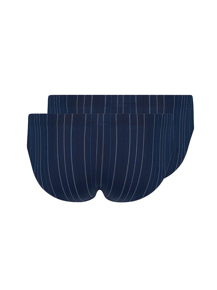 Le lot de 2 slips de sport HUBER Hautnah Cotton, bleu foncé à fines rayures, séduit par sa...plus