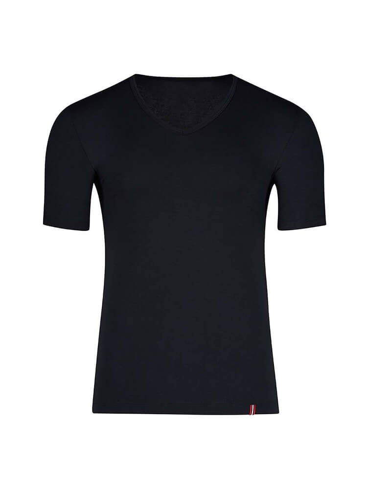 Le t-shirt HUBER Hautnah Original noir offre une douceur et un confort exceptionnels. Son tissu jersey, composé de 47 % de coton, 47 % de modal et 6 % d'élasthanne, garantit élasticité, douceur au toucher et confort tout au long de la journée. Avec son col en V, ses manches courtes et sa coupe classique, ce t-shirt est idéal comme sous-vêtement ou haut léger. Lavable en machine et facile à repasser, il est très facile d'entretien.