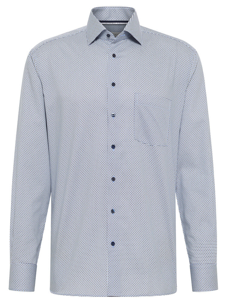 La chemise d'affaires moderne de la collection ETERNA Modern Fit représente l'homme confiant et à la mode d'aujourd'hui. Une coupe contemporaine combinée à des détails de produits de qualité promet un haut niveau de confort, faisant de cette chemise un maître de l'arrangement. La chemise à motifs pour homme de la couleur bleu clair ne doit manquer dans aucune garde-robe masculine et peut être combiné avec le col classique et distingué Kent pour toute occasion ainsi que dans la vie de tous les jours. Avec une cravate assortie et un nœud large de cravate, on obtient cette chemise pour ETERNA Modern Fit à son meillieur.