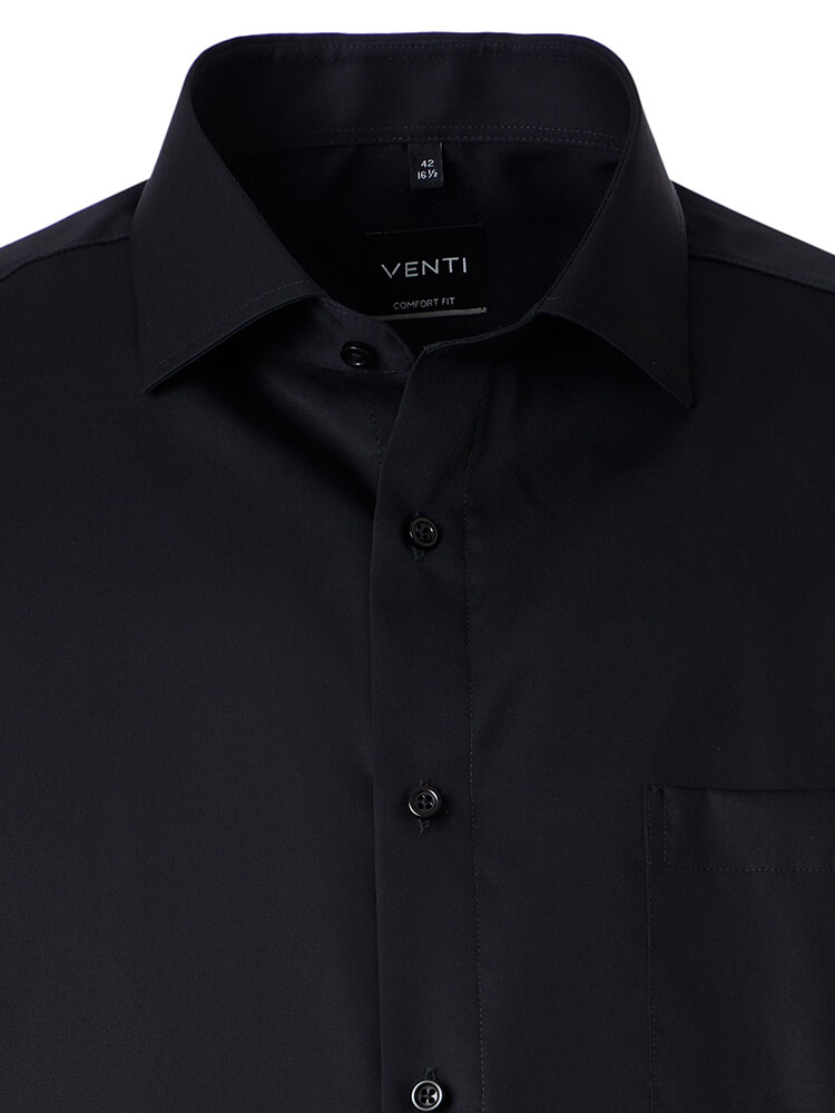 La chemise d'affaires conforte de la collection VENTI Comfort Fit représente l'homme d'aujourd'hui, sophistiqué et soucieux de la mode. Une coupe classique associée à des détails mode promet un haut niveau de confort et fait de cette chemise un maître de la combinaison. La chemise unie pour homme de la couleur noire ne doit pas manquer dans la garde-robe de tout homme et peut être associé au col élégant et intemporel Kent pour toute occasion ainsi que dans la vie de tous les jours. Avec une cravate assortie et un nœud large de cravate, on obtient cette chemise pour VENTI Comfort Fit à son meillieur.