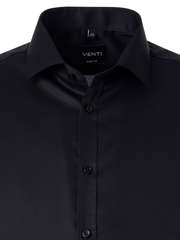 La chemise d'affaires élegante de la collection VENTI Body Fit représente l'homme mince et soucieux de la mode d'aujourd'hui. Une coupe moulante associée à des détails mode promettent un haut niveau de confort et font de cette chemise un artiste de la combinaison. La chemise unie pour homme de la couleur noire ne doit manquer dans aucune garde-robe masculine et peut être portée avec le col 'élégant et intemporel Kent pour toute occasion ainsi que dans la vie de tous les jours. C'est avec une cravate étroite et un petit nœud de cravate que cette chemise pour homme VENTI Body Fit à son meillieur.